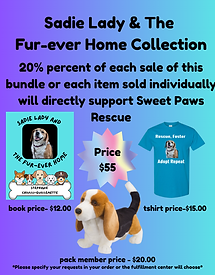 Collection Price - $55.00 items include: Sadie Lady And The Fur-Ever Home Rescue, Foster, Adopt, Repeat shirt - sadie swag shop (Ben Franklin Print Co) pack stuff animal - sadie swag shop (stuffing safari)